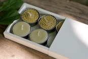 蜜蝋キャンドルの初心者向けには、手軽に、蜜蝋キャンドルのオレンジ色の炎を楽しめるティーライトのセットです。