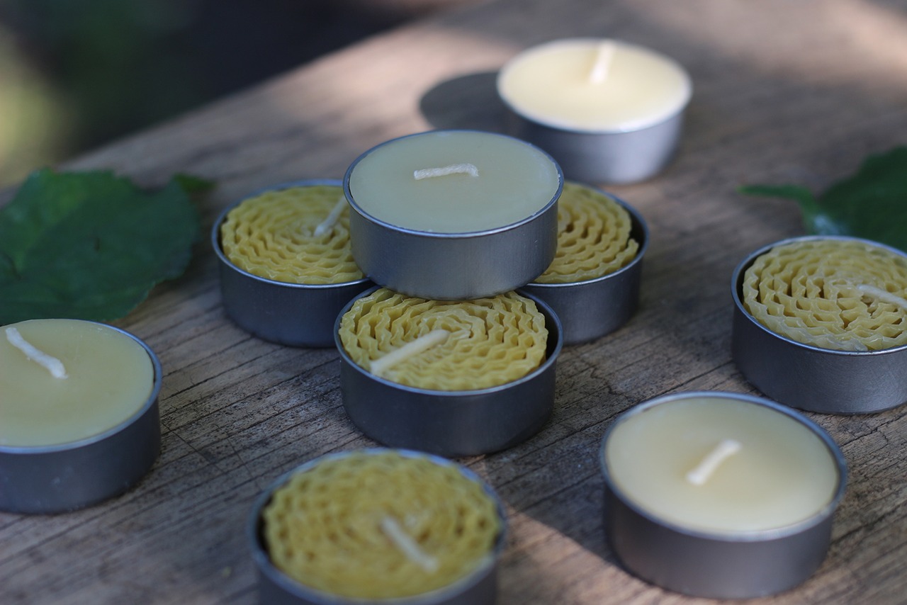 燃焼時間の短いハニカムティーライトと長く楽しむことが出来る蜜蝋ティーライトをセットに致しました。