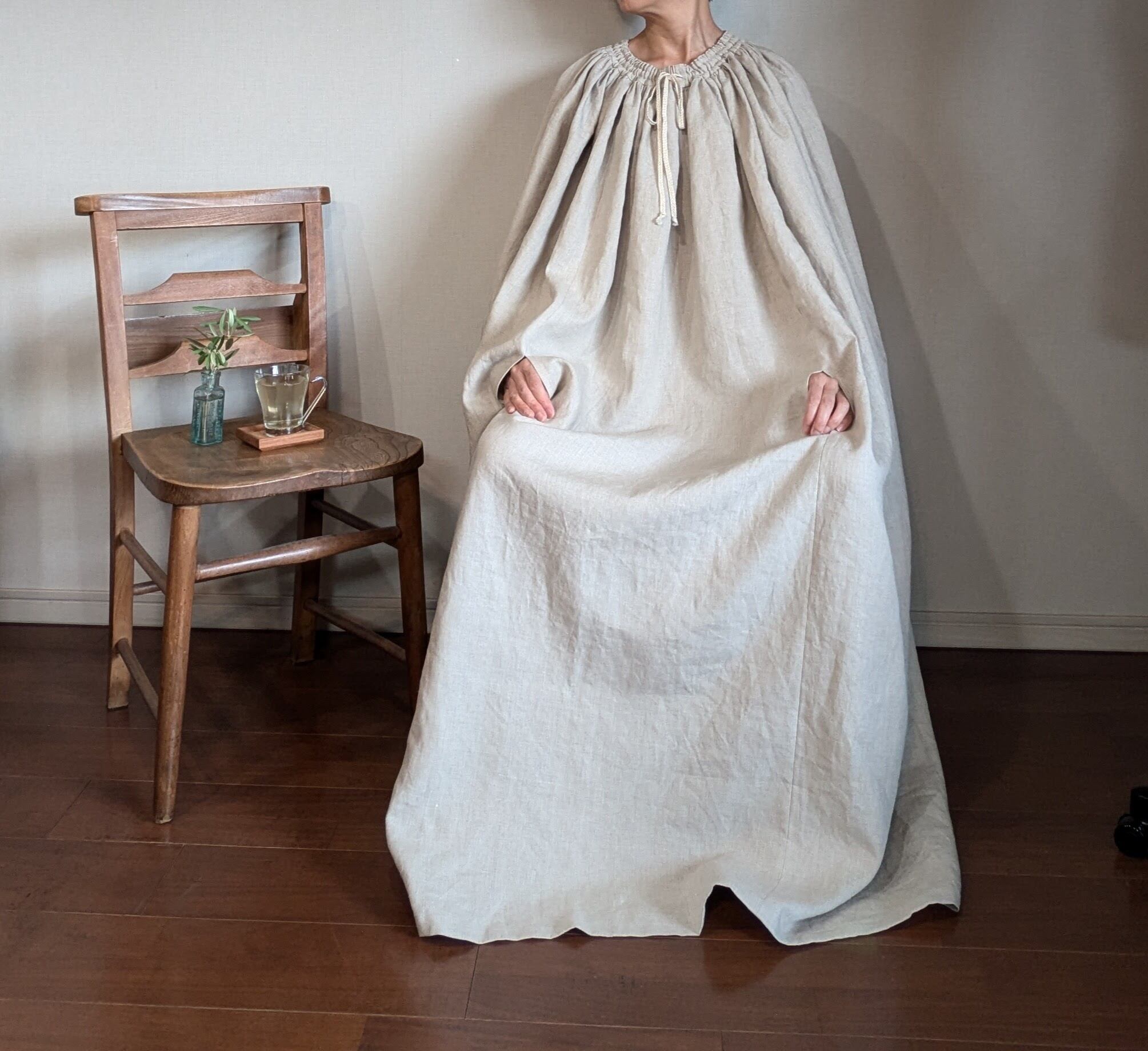 肌に直接触れるマントも自然素材のもので、心地よさを追求して生まれた国産リネンのマントです。